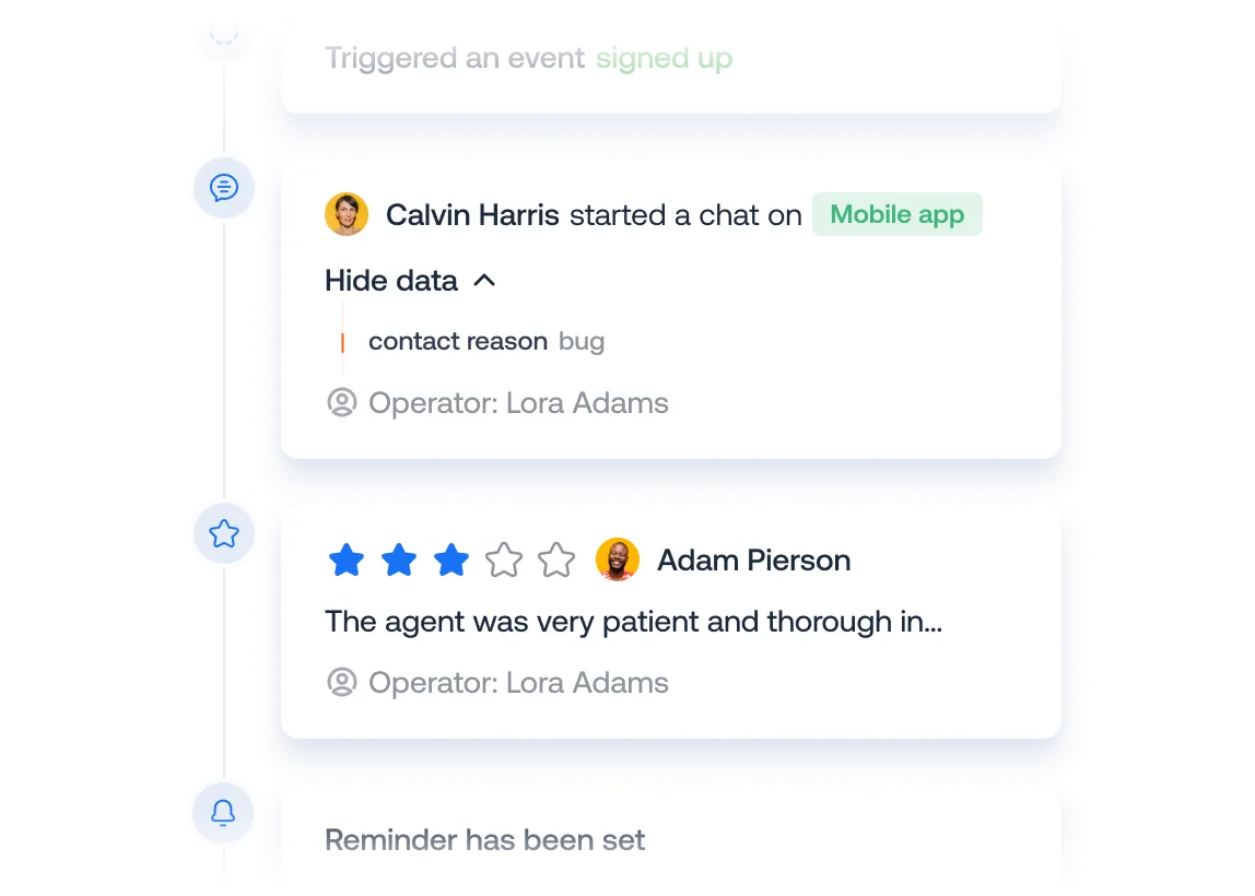 Put an end to complex data visualization and productivity loss for your teams with Crisp’s native or custom data connectors. Automatically synchronize contextualized information for each customer to enable your reps to personalize every conversation, no matter the channel.
